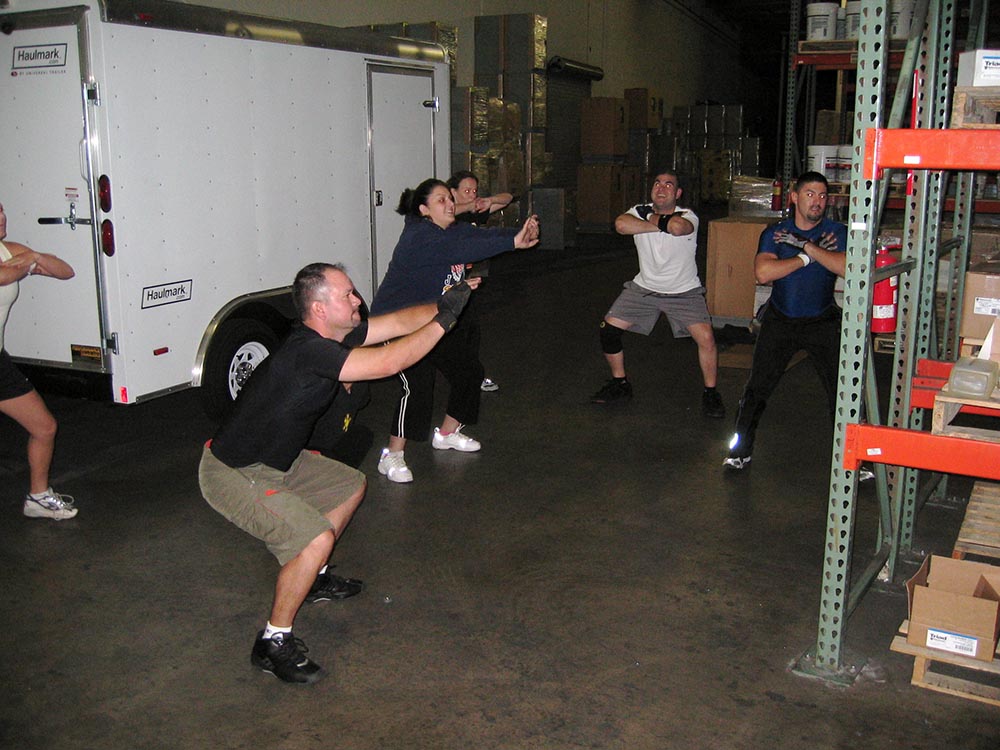 The McGee Company's Mark Schlueter, VP, leads CrossFit workouts with fellow employees.