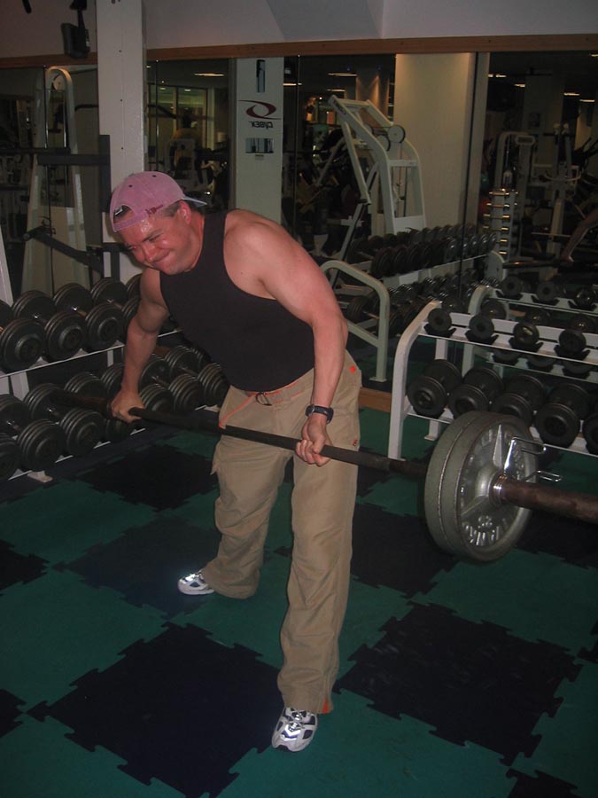 Paul Wake, training for the world's "1st Virtual Indoor Shoveling Contest."