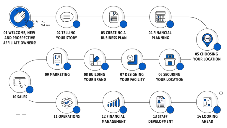 The Affiliate Starter Kit is an interactive, detailed course designed to help prospective affiliate owners, like you, who are in the early stages of gym ownership. It will help you understand proper financial planning and budgeting, location scouting, lease negotiations, building your brand, and creating sales processes and marketing strategies. The guided course also provides templates, worksheets, and a community discussion board so you can optimize all the resources it has to offer.