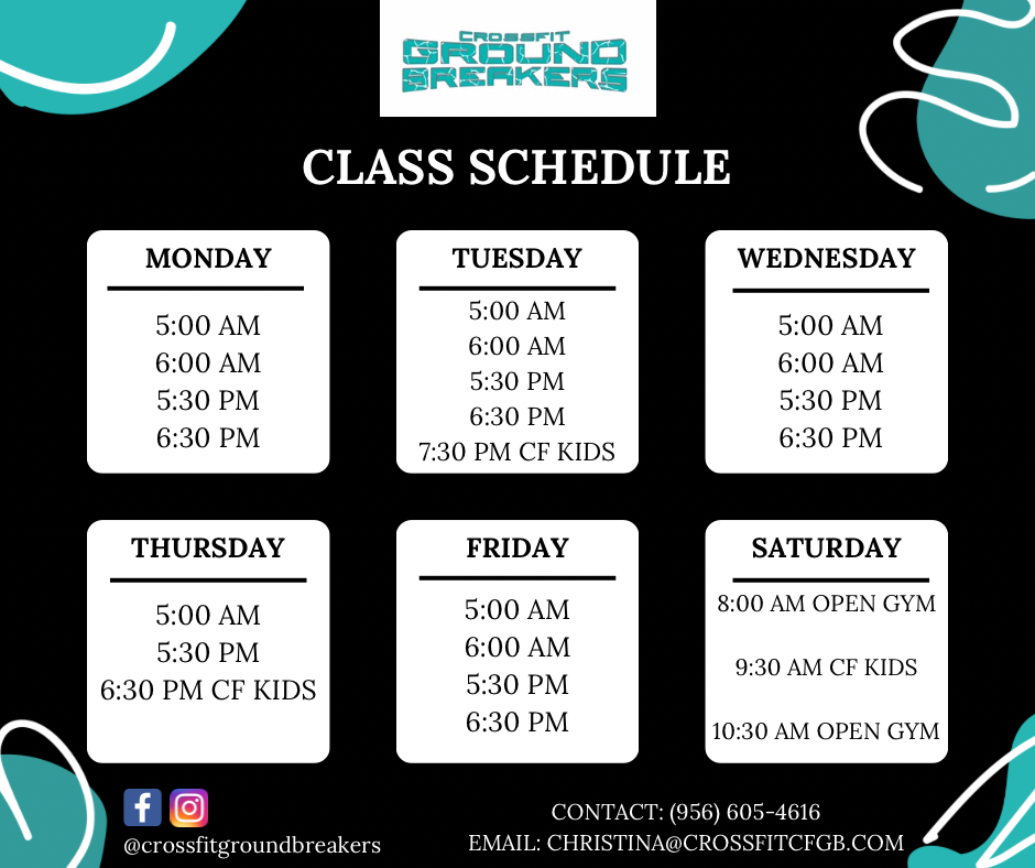 Click to view and enlarge. Class times are subject to change, contact this gym to verify the schedule.