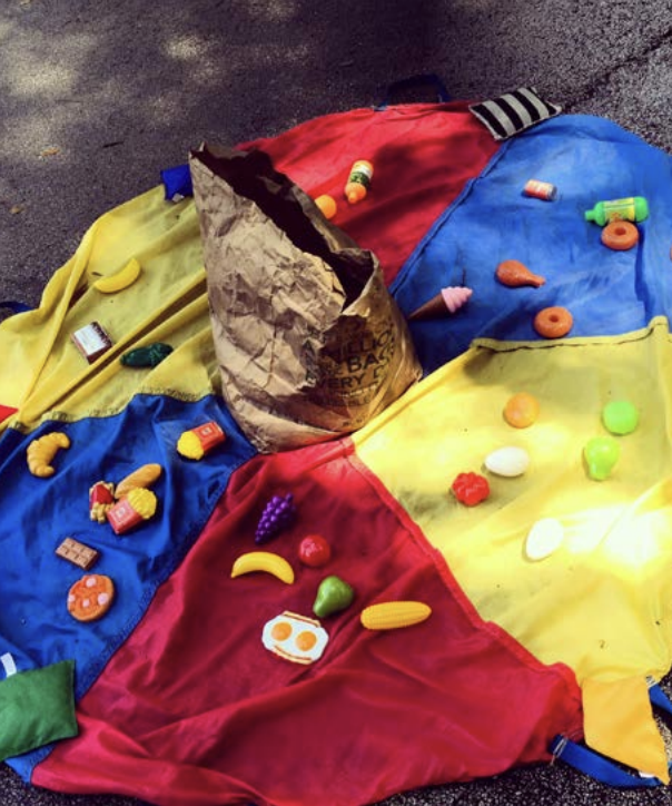 - As the pieces of food are pulled from the bag, the kids perform predetermined movements, depending on whether the food is “healthy” or “junk.” The movements can be varied for optimal warm-up time.