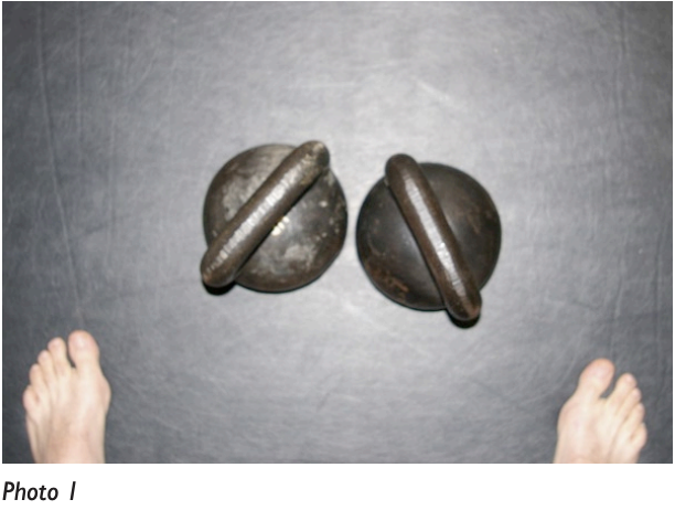 - Set two kettlebells on the ground in front of you, handles on the diagonal (photo 1).